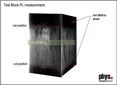 硅塊PL結(jié)果為合能陽光獨(dú)家檢測,設(shè)備是匈牙利PHYS公司NIR-01光致發(fā)光升級系統(tǒng)。