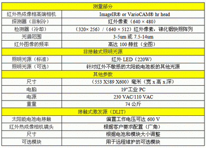 技術參數-PV-LIT太陽能電池和組件在線檢測系統(tǒng):